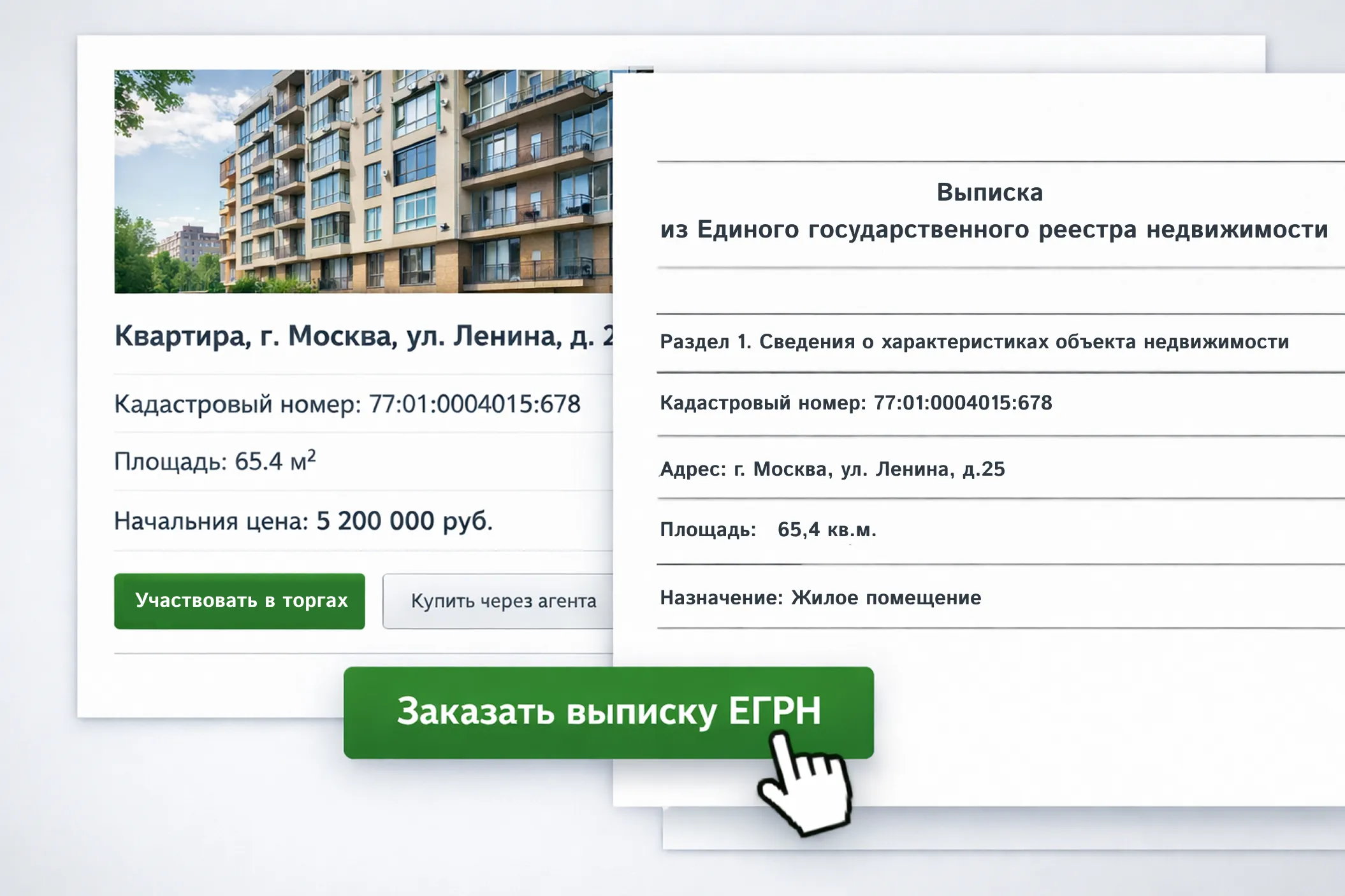 Подключили заказ выписки из ЕГРН прямо из карточки лота